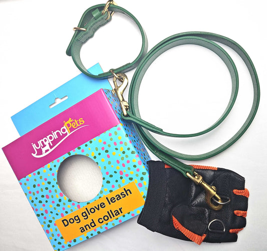 Dog Pattern Collar & Leash and Glove with two d-rings